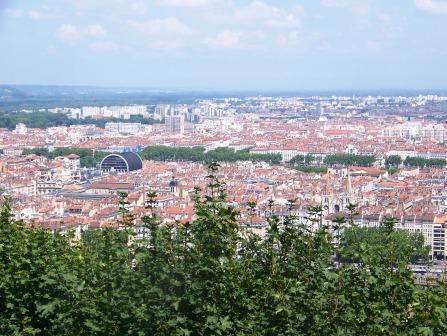 The view from the top of Fourvière hill shows the huge expanse of the modern city.