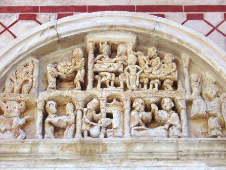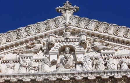 It sits, like an gigantic wedding cake, covered inside and out with religious