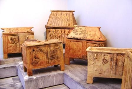 The Minoans cremated their dead and then placed them in these elaborately decorated coffers.
