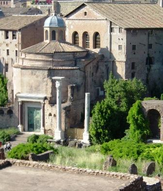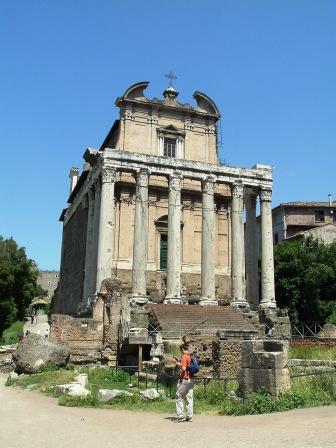 another recycled temple: built in 141 a.d. by the emperor antoninus pius to honor his empress faustina, whom he proclaimed a goddess, it was dedicated also to the emperor himself when he died in 161. in the middle ages, it was converted into a church to saint lawrence (san lorenzo). the present-day church dates from the 17th century.