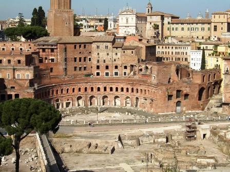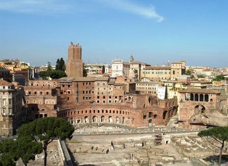 the imperial forums were built adjacent to the roman forum. The roman forum constituted the heart of the city of rome during the republican era, and included the senate house and law courts as well as merchants' shops. when the republic fell and was replaced by an imperial government, at the beginning of the Christian era, however, the roman forum had become too small, so was enlarged by successive emperors, with new forums, each named after themselves, each including open areas, stalls for shopowners, and temples.