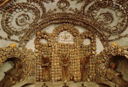 the bones of hundreds of capuchin monks. note the arches against the wall, comprised