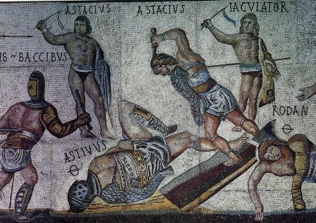 the museum includes this roman-era fresco of gladiators, each named so perhaps