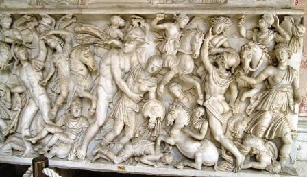 a triumphal altar showing the defeat of the mythical amazons.