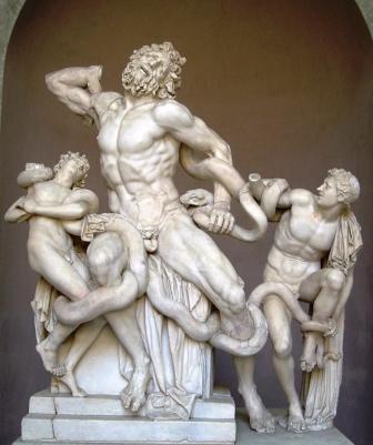the laocoon, a famous roman sculpture--a man and his sons attempt a futile escape