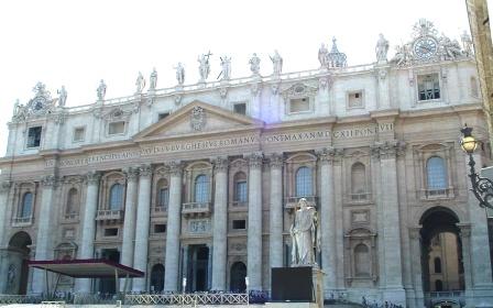 In front of the main entrance to the basilica are large statues of st. peter