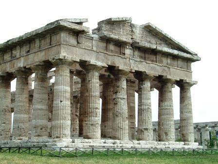 paestum was begun as a greek colony in the south of italy in about 600 b.c. at that time, the greek city-states were major maritime powers and, with an expanding population, they established colonies across the mediterranean, including in what became Turkey, France, and Libya. Most of their colonies were in southern Italy, as with paestum, which was originally named poseidonia, after the greek god of the sea, poseidon. eventually the greek colony was conquered by a local tribe, the lucanians, and later still, conquered by the romans beffore being abandoned. today paestum is an important archeological site, and has an excellent museum of local discoveries. at present only the central public area of the town has been excavated.