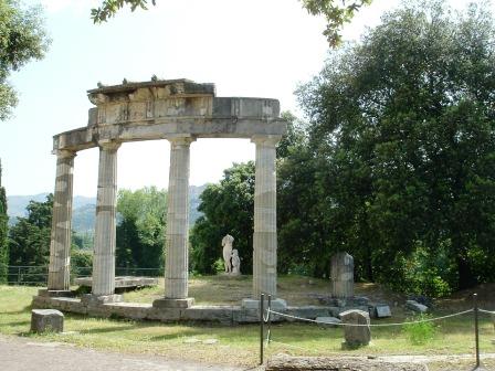 since roman times, tivoli has been a summer resort for the wealthy of rome. it is located on the western slopes of the apennine mountains, where the aniene river cascades in waterfalls onto the plain of rome. in the second century a.d., the roman emperor hadrian built an enormous complex of palace buildings here as a summer residence. that, the villa adriana or hadrian's villa, was our first stop, in the morning after we arrived at tivoli.