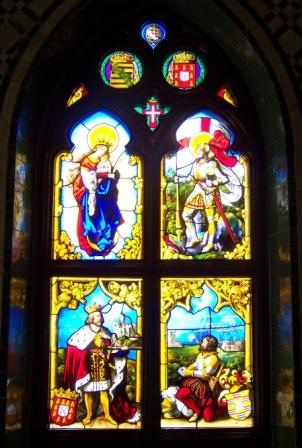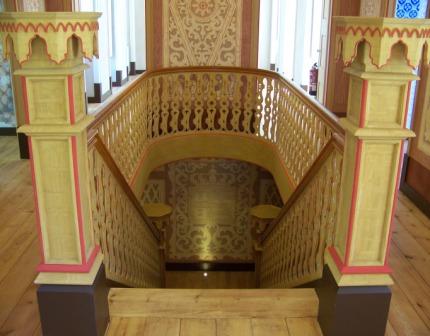 The design is an eclectic and brightly colored mix of medieval Gothic and Moorish