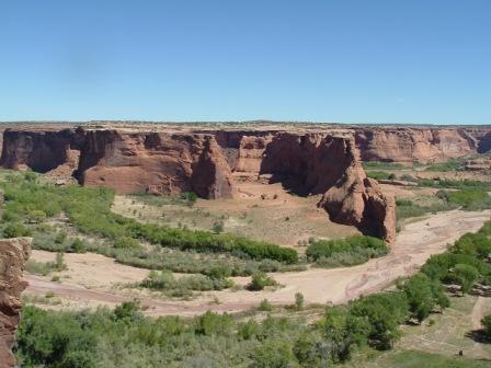 The next morning, we set out to explore Canyon de Chelly. It stretches for miles like a miniature Grand Canyon, although only miniature by Grand Canyon standards: at its deepest point, it is a thousand feet from the rim to the river below. We decided to hike down to visit ancient Anasazi ruins, called the White House ruins. (Yes, Matt did it, too!) The scenery was incredible from the top to the bottom, five hundred feet down and five hundred feet back up.