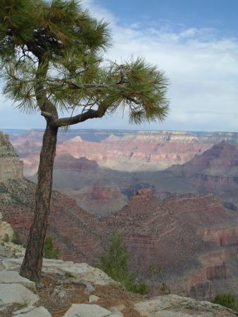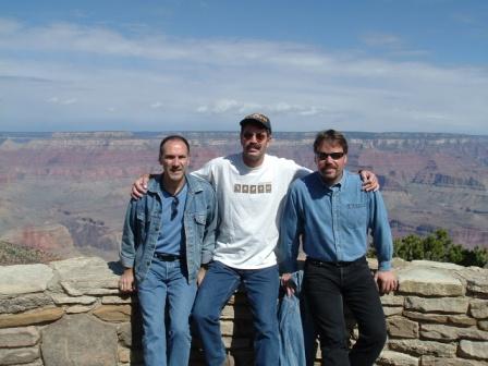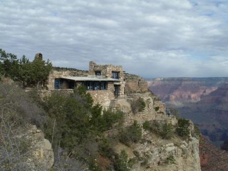 we spent the night at the grand canyon village. (note to albertans: it reminded me a lot in size and feel of jasper.) there are several old buildings in the town: an old hotel built in a western style, an old photo studio built of stone right on the edge, and an old gift shop In the design of a hopi house. In the morning, we got up to walk around the edge of the Grand Canyon. matt eventually chickened out, but brian and joe hiked along the rim for an hour or so.