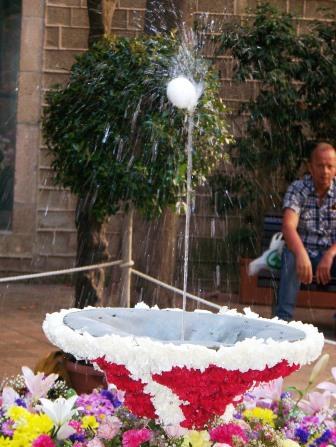 an egg is balanced on the jet of water. No one was too clear on the origins