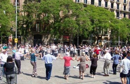 Rings of dancers form in front of Barcelona's square every Sunday afternoon.