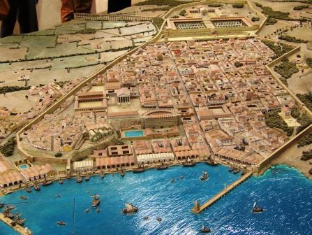 Above are models of Tarragona as it appeared in the Roman era, left, and in the Middle Ages, right.