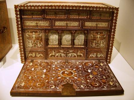 arts floor. Above: pottery bowls, and an elaborate portable chest
