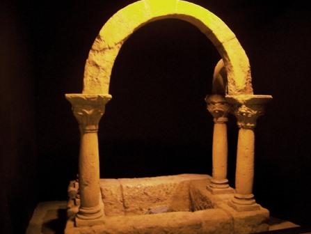 Below: actual remnants of a Visigothic barbarian era Christian baptismal font.