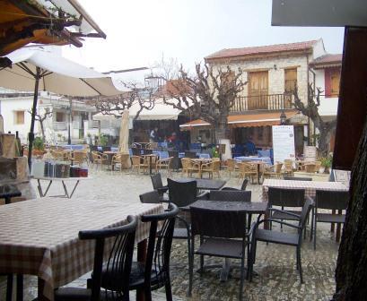 We had lunch at Omodos on the square, and had to wait while a huge rainstorm passed through.
