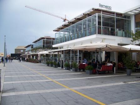 At one end of the promenade is a marina, with new buildings that house restaurants and shops.