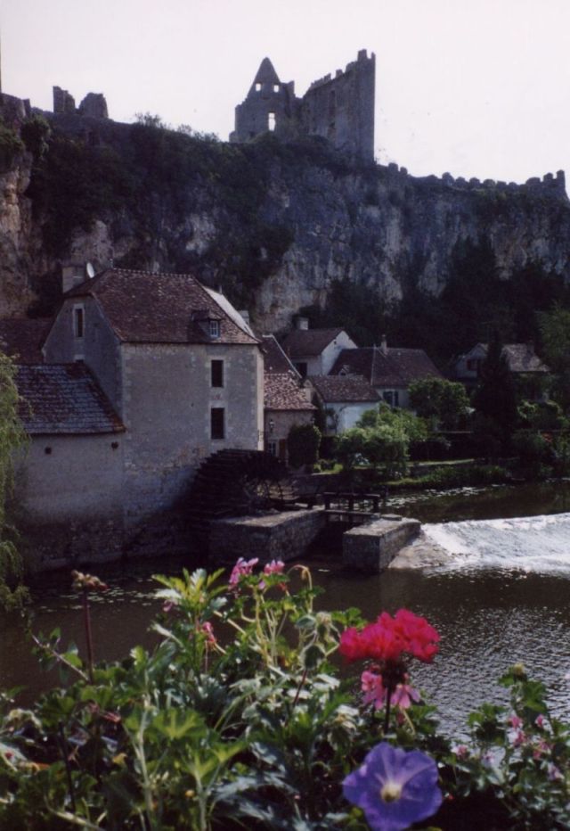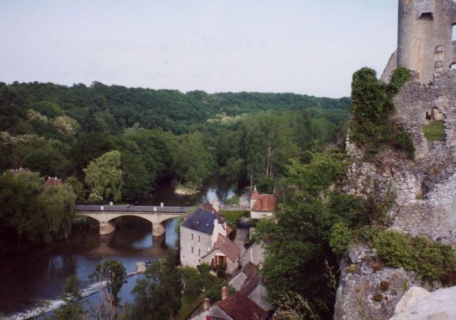 We had arranged to spend this night in a small town east of Poitiers, called Angles-sur-l'Anglin. And small it was! Only three or four streets winding their way up and down the steep riverbank. But it was also incredibly picturesque. The town had been built around a medieval castle, now in ruins. A mill had been built there, too, but was now converted into a house, so only the remnants of the millpond remained. A delightful and restful spot!