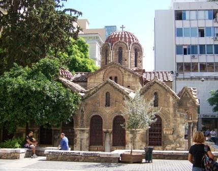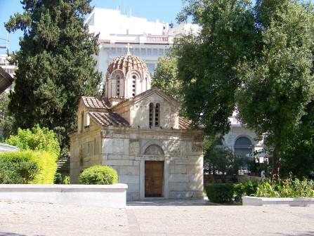 and the eleventh-century church of Panagia Kapnikarea (right), built when