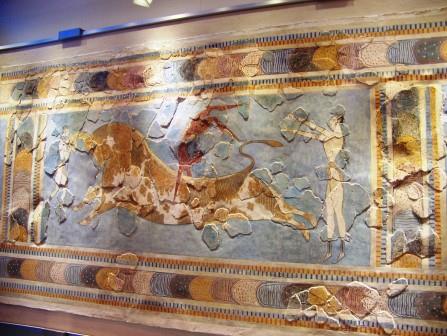 The wall frescoes show a ritual of some sort that involved jumping onto and over bulls: maybe the long-ago ancestor of bullfighting.