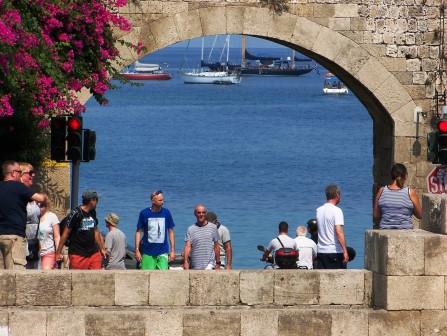 Several of the gates in the wall surrounding the old city open out onto Rhodes' extensive maritime harbor.