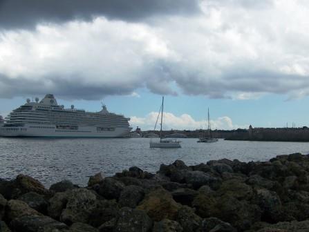 Though the waterfront is mostly industrial, there were a few areas set up for recreation, and there was a cruise ship docked there.