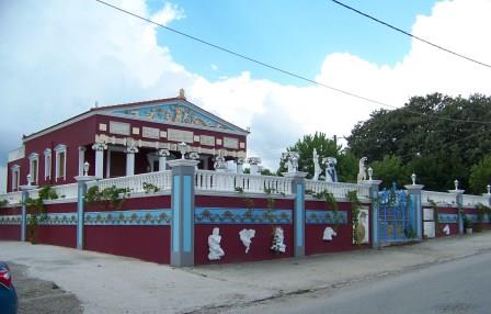 Along the drive to Moní Filerímou we saw this modern house, a gaudy tribute to classical Greece.