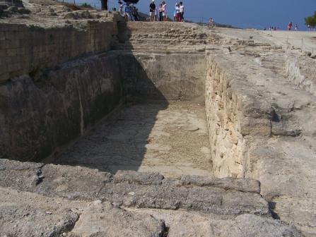A monumental staircase leads down from this highest part of the Acropolis. Under it in antiquity were cisterns and storage rooms.