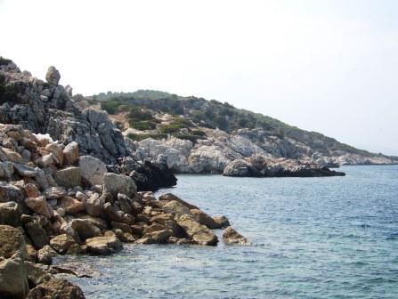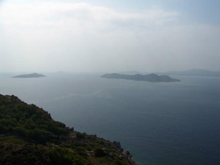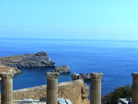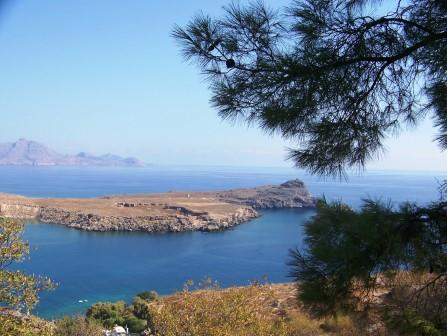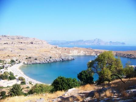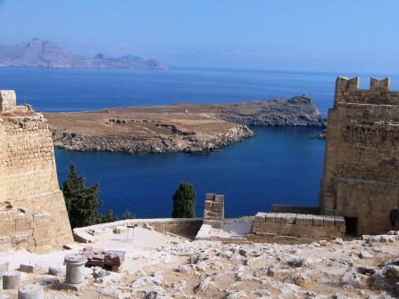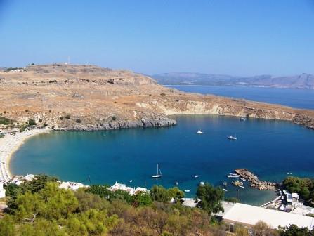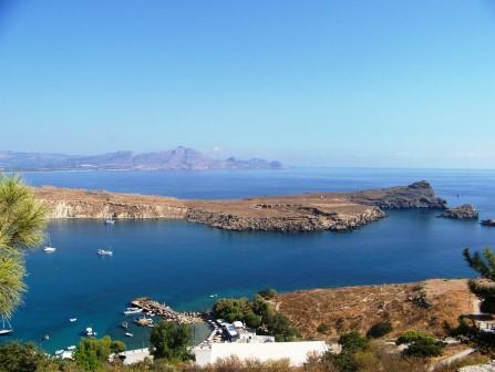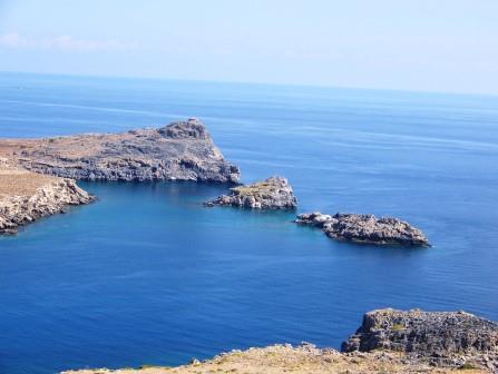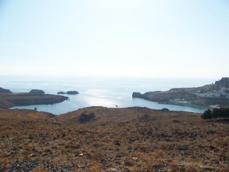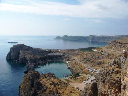 You can see both of the ancient harbors of Lindos, one to the south and the other to the north of the Acropolis.