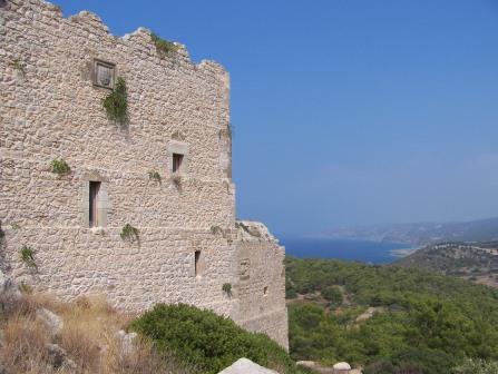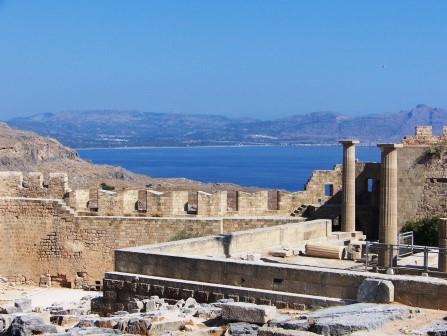 At the entrance to the Acropolis is the medieval castle built there by the Knights Hospitaller.