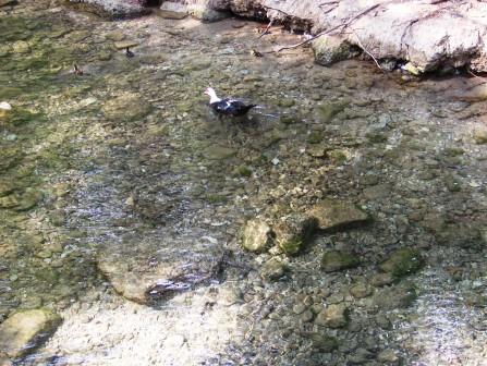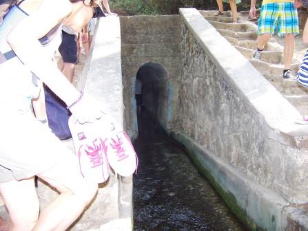 A tunnel brought the water from the springs beneath a mountain to more populated areas, and some adventurous people were wading into it.