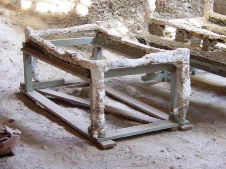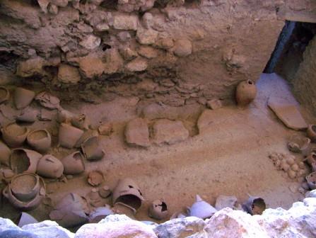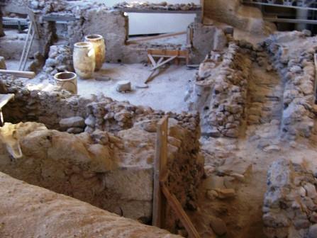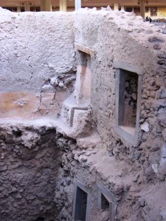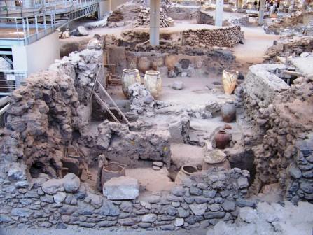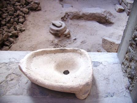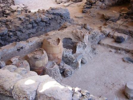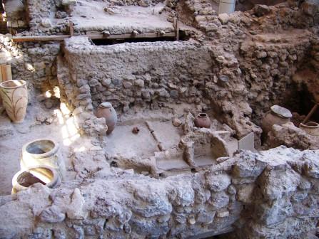 Many ancient objects were found in place, including furniture and vessels for preparing and storing food.
