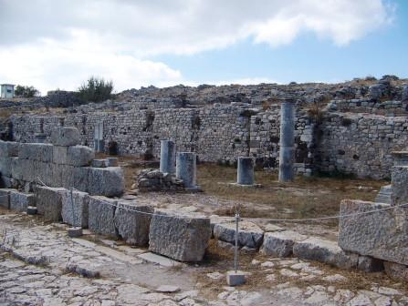 In addition to homes, there are vestiges of a temple, a gymnasium, and a theater, and also the ancient agora (main square) and stoa (market hall).