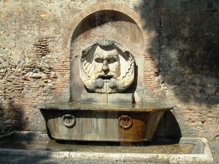 the aventine hill is a quiet neighborhood, where the splashing of a public fountain provides a welcome sound.