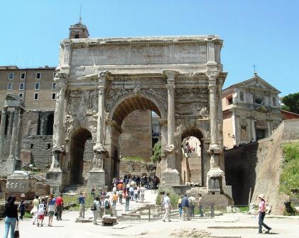this is the arch of septimius severus, built 203 a.d. after the emperor's victories over the parthians, which saw him add mesopotamia to the roman empire.