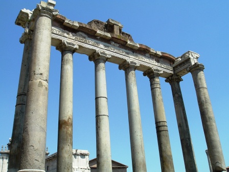 in some cases, only fragments of ancient buildings remain. this is the temple of saturn. the roman state treasury was housed in its basement.