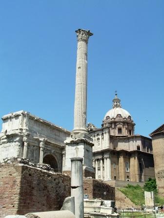 this column was the last thing added to the forum: a gift to the city of rome from the byzantine emperor phocas in 608 a.d. in this period, the byzantine emperors were still claiming to be the rightful emperors over the whole of the roman empire, but were unable to enforce that claim.