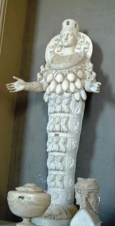 many breasted," based on an image of her in the main temple at ephesus