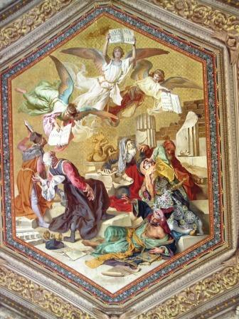 throughout the papal palace, though, there are luxurious wall and ceiling frescoes,
