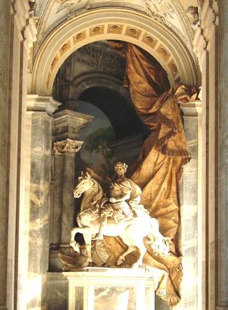 inside the porch of the basilica is a huge statue of Charlemagne, who was crowned