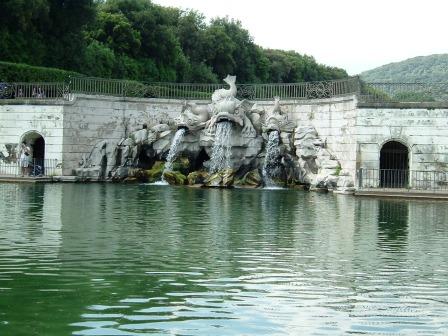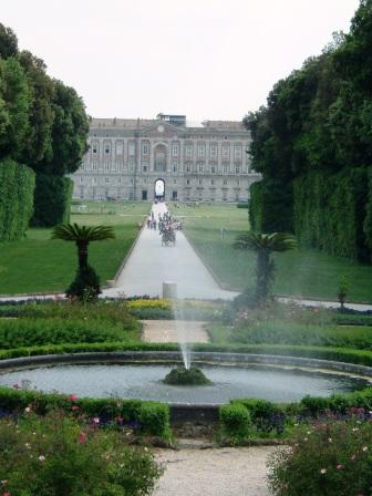 our first stop in campania was at caserta. caserta was a sleepy hilltop town, founded in the middle ages, when king charles III of naples decided to build a royal palace on the plain below the town. charles was a member of the bourbon family, related to the kings of france, and decided that he wanted his own version of the french palace of versailles. work was begun in 1752 and continued for the rest of the 18th century, even after charles' death. the kings of naples continued to use the palace as their primary residence until 1859, when the bourbon kings were overthrown by those who wanted to unite all of italy.
