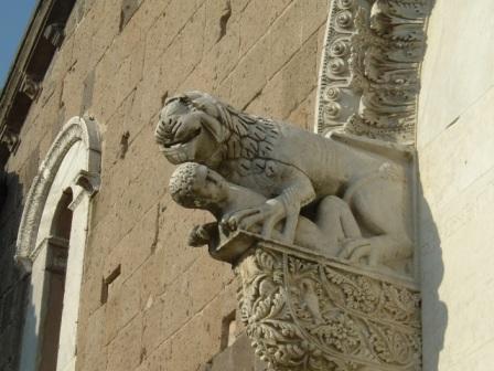 on the front facade of the cathedral, there was this odd sculpture of a lion