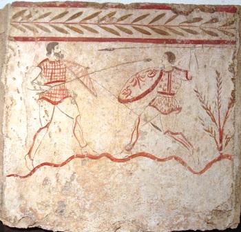 houses and decorated with frescoes--mythological scenes, hunting and battle