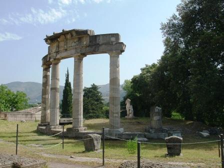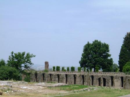 since roman times, tivoli has been a summer resort for the wealthy of rome. it is located on the western slopes of the apennine mountains, where the aniene river cascades in waterfalls onto the plain of rome. in the second century a.d., the roman emperor hadrian built an enormous complex of palace buildings here as a summer residence. that, the villa adriana or hadrian's villa, was our first stop, in the morning after we arrived at tivoli.