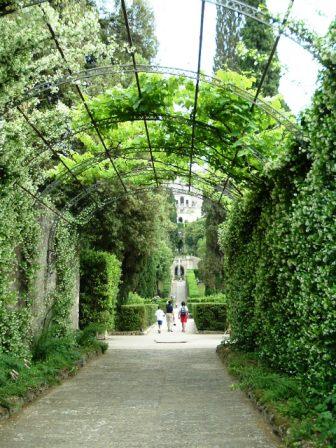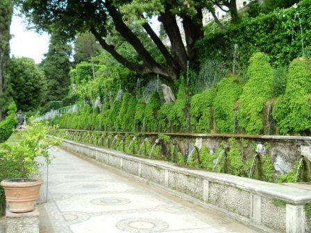 the garden contains hundreds of fountains. this walk alone is called the avenue