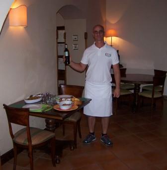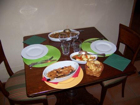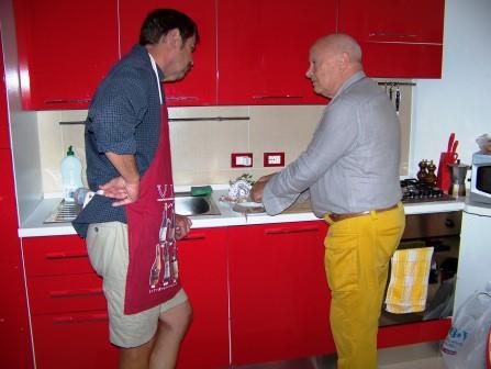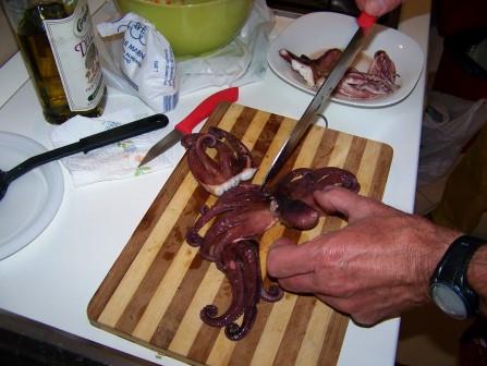 Joe, meanwhile, experimented with Sicilian foods and cooking. Here is the owner of the apartment, our host Giuseppi, advising Joe on how to cook octopus. He bought the octopus at the market, prepared it, and joined us for dinner.