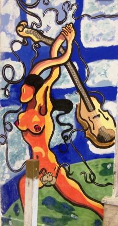 Below is the narrow street where our Palermo apartment was located--and graffiti on the wall near the entrance to it.
