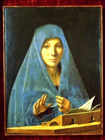 (right) the Virgin Mary receiving the church dedicated to her from George of