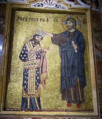 at the back of the church shows (left) Christ crowning Roger II (the second